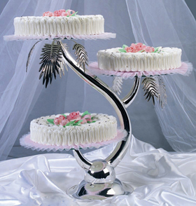 Подставка для торта многоярусная Лилия, серебряная, 3 уровня металл/стекло